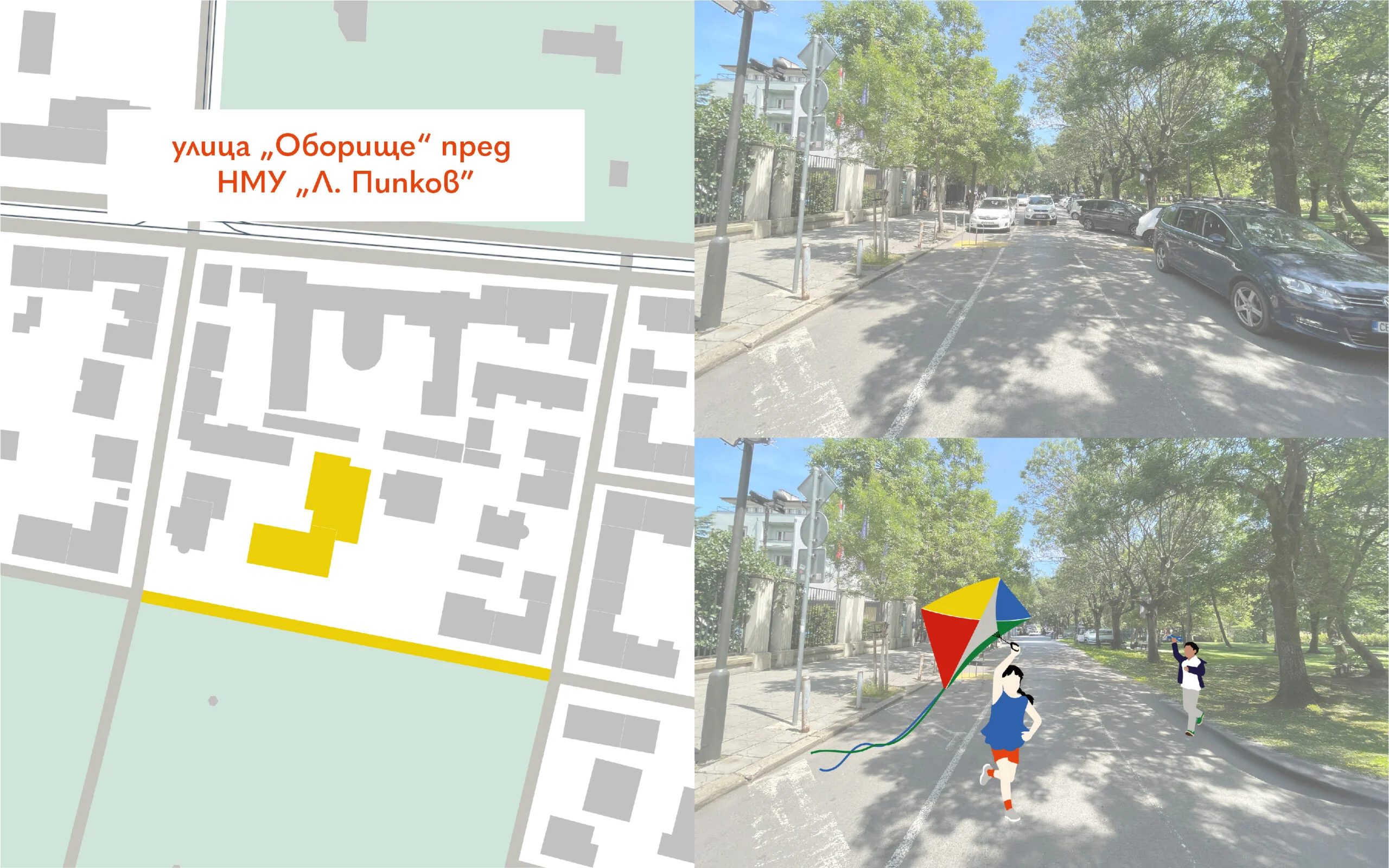В събитието се включиха различни организации, които подкрепиха децата да припознаят улицата пред училището като свое пространство – пространство, което те могат да създават!